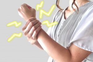 肘の内側で神経が圧迫され、小指や薬指にしびれが出やすいのが特徴です。