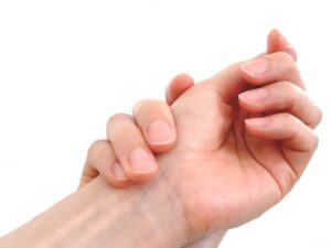 手首で神経が圧迫され、親指から薬指にかけてしびれや感覚の鈍さが現れます。