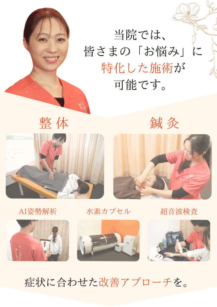 に投稿されました みた2025-05-03Trustindex は、レビューの元のソースが Google であることを確認します。 疲労が溜まった時や大事な試合前に息子が利用させていただいています! すごく良いみたいです! おすすめです!に投稿されました サク2025-05-02Trustindex は、レビューの元のソースが Google であることを確認します。 とても丁寧なカウンセリングで、ずっと知りたかった自分の姿勢について知ることができました!また、慢性的な首肩こりも治療後はかなりつっぱり感なく動くようになって、とても軽くなりました! スタッフの方々も人当たりがよく、リラックスして施術を受けられました! はじめは一回だけお試しのつもりでしたが、これからも通っていきたいと思います!に投稿されました 似鳥陽子2025-04-29Trustindex は、レビューの元のソースが Google であることを確認します。 整体と美容鍼灸で伺いました。まだオープン1周年で、駅から近く、広くてキレイな、居心地の良い整体院です。 最新技術をいろいろ取り入れていて、1分脈を測るだけでストレスチェックや血管年齢までわかったり、服を着たまま写真を撮ってもらうだけで、骨格の歪みや未来の歩き方予想図までわかるなど、めっちゃ画期的で驚きました! 院長の山崎先生は、多才で研究熱心で、とても安心できる方です。美容目的で行きましたが、首肩のコリや腰の痛みまでスッキリ整い、うれしかったです。もちろん、顔のむくみもとれて、肌の張りとリフトアップもできました。 ご近所に、人気の回転寿司「なごやか亭」があったので、帰りにつまんで幸せ☆またお伺いしたいと思います。に投稿されました ほりち2025-04-25Trustindex は、レビューの元のソースが Google であることを確認します。 丁寧なカウンセリングと、温かな雰囲気でリラックスして施術を受けられました。辛い首肩周りを中心に施術していただきましたが、軽くなりありがたかったです! 自宅でできるケアについてもアドバイスいただいたので、自宅でもケアしたいと思います。同時に美容鍼やお灸も受けられ、ご褒美時間になりました!ありがとうございました。に投稿されました 太田美智子2025-04-23Trustindex は、レビューの元のソースが Google であることを確認します。 斬新な治療院見つけました! 問診が丁寧でよくお話を聞いてくださいます。安心してお任せできると思い通うことにしました。札幌ではまだここにしかないという高気圧水素酸素カプセルを試してみたいです❣️に投稿されました SAT2025-04-10Trustindex は、レビューの元のソースが Google であることを確認します。 初めて伺いましたが、問診から施術までとても丁寧に対応していただき、安心してお任せできました。先生も説明がわかりやすく、親しみやすい雰囲気でリラックスできます。 今回は揉みほぐしと初めての鍼灸をお願いしましたが、ガチガチだった肩や首のコリがしっかりほぐれて、体が軽くなりました。特に驚いたのは、鍼灸の後、その日の夜の睡眠の質がぐっと良くなったこと。ガーミンのスマートウォッチで睡眠データを見たら、明らかに深い眠りの時間が長くなっていてびっくりしました。 副交感神経がしっかり刺激されて、深くリラックスできたんだと思います。久しぶりに朝までぐっすり眠れたのがとても嬉しくて、これからも定期的に通いたいと思います。に投稿されました 竹内新2025-04-03Trustindex は、レビューの元のソースが Google であることを確認します。 足底腱膜炎が楽になりました!!!!に投稿されました 堀江貴子2025-03-17Trustindex は、レビューの元のソースが Google であることを確認します。 初めて伺いましたー。 カプセル、針、電気にマッサージの施術、ガチガチの体が随分楽になりました。 特にカプセルはあまりの気持ち良さにすっかり眠ってしまいました。気持ち良かった〜。 また札幌に来た時は伺いたいと思います。 ありがとうございました。に投稿されました りったん2025-03-15Trustindex は、レビューの元のソースが Google であることを確認します。 スタッフ皆さん素敵な人ばかりで、カウンセリングから施術までしっかり寄り添ってくださるので安心してお任せできます!もっと読み込む